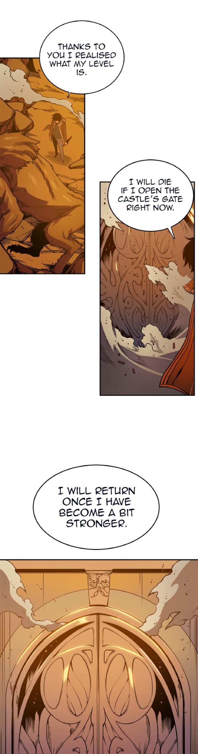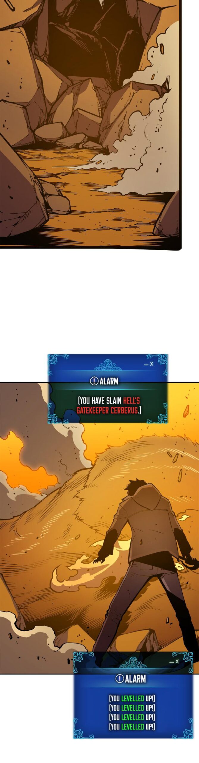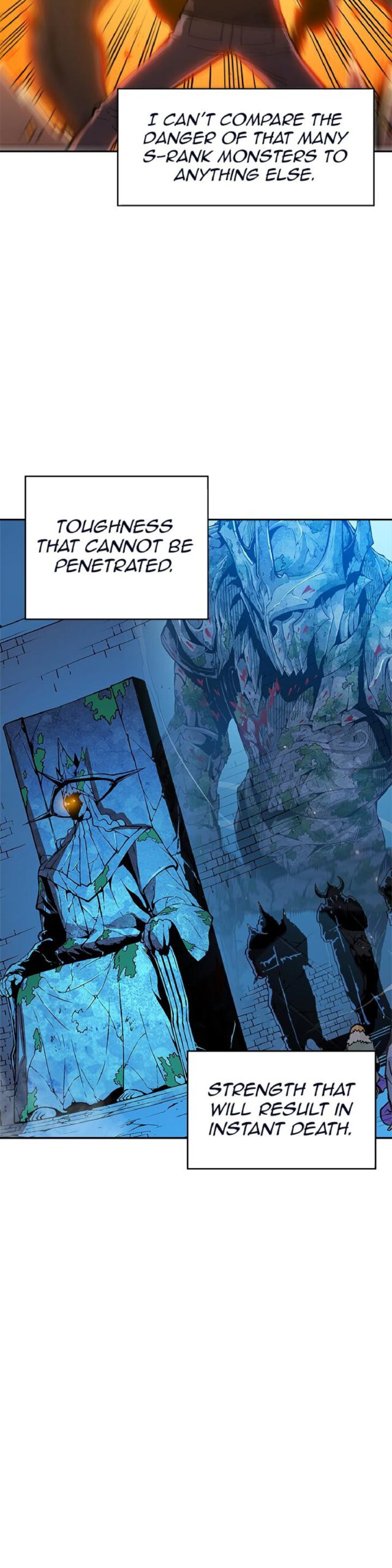 Jin-Woo confronts the Monarchs in an epic battle. Using all of his strength and the power of his shadow army, he fights to protect humanity. This chapter is the climax of the story, showcasing Jin-Woo’s growth and determination.